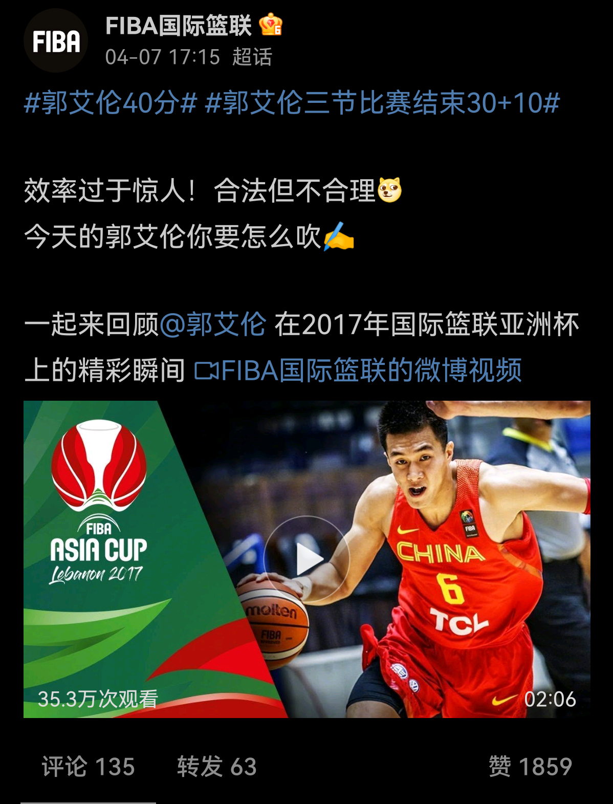 赛后微博也炸了,瞬间“郭艾伦”仨字冲上微博热搜榜第一名,非篮球迷还纳闷儿,就一个人名的热搜,以为这人咋地了呢😂